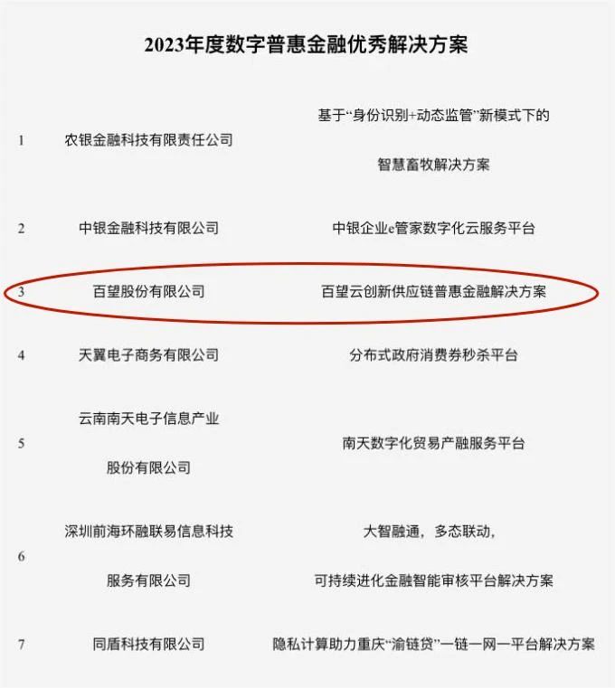 屡获佳绩!百望云荣膺“2023年度数字普惠金融优秀j9九游会入口的解决方案”